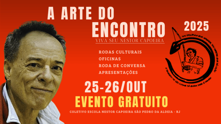 Uma produção do Ponto de Cultura Centro de Movimento da Aldeia, em parceria com os coletivos Escola Nestor Capoeira São Pedro da Aldeia e Coletivo Tambor Vivo, o evento A Arte do Encontro 2025 celebra a memória do Mestre Nestor Capoeira, um dos grandes pilares da capoeira contemporânea, e exalta a força da cultura popular em suas múltiplas expressões.