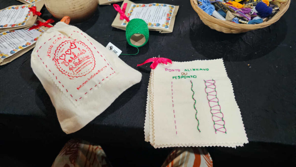 A oficina foi conduzida pelo Coletivo de Bordadeiras do projeto Bordado Solidário. Durante as aulas, as participantes aprenderam os cinco pontos básicos do bordado: ponto reto, ponto em cadeia, ponto atrás, ponto margarida e ponto haste. Cada aluna recebeu um kit com materiais, como agulhas e linhas, e um caderno em tecido para desenvolver as práticas.