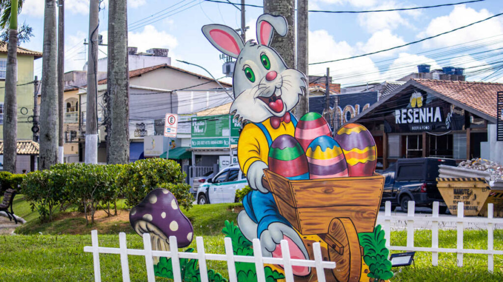 A Praça Agenor Santos, em São Pedro da Aldeia, ganhou uma nova ambientação para celebrar a Páscoa. A decoração temática, preparada pela Secretaria Municipal de Cultura, já pode ser visitada por moradores e turistas que passam pelo local. Com elementos lúdicos que remetem à data, a Praça da Matriz, como é popularmente conhecida, foi transformada com coelhos, ovos decorativos e estruturas pensadas para encantar o público.