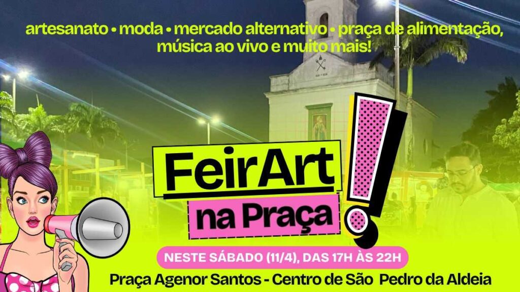 São Pedro da Aldeia recebe, neste sábado (11/04), mais uma edição da Feirart. O evento será realizado na Praça Agenor Santos, a Praça da Matriz, das 17h às 22h. A iniciativa conta com o apoio da Prefeitura aldeense, por meio da Secretaria Municipal de Cultura, e promete reunir artesanato, moda autoral, gastronomia e música ao vivo em uma programação voltada para valorizar o empreendedorismo feminino. A participação é gratuita e a realização está sujeita às condições climáticas.