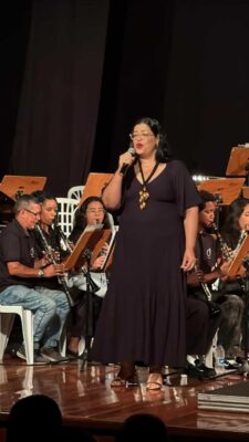 A Orquestra Sons da Aldeia abriu a noite com uma seleção de músicas conhecidas que animaram o público e mostraram a evolução dos alunos do projeto. Sob a regência do maestro Jorge Rafael Goés, o grupo interpretou Blinding Lights (The Weeknd), As Rosas Não Falam (Cartola), com solo de Vitor Hugo, e encerrou sua participação em clima de celebração com Whisky à Go-Go (Roupa Nova). A cantora Vivia Máris foi um dos destaques da apresentação, com performances marcantes das canções Bem Que Se Quis e Como Nossos Pais.